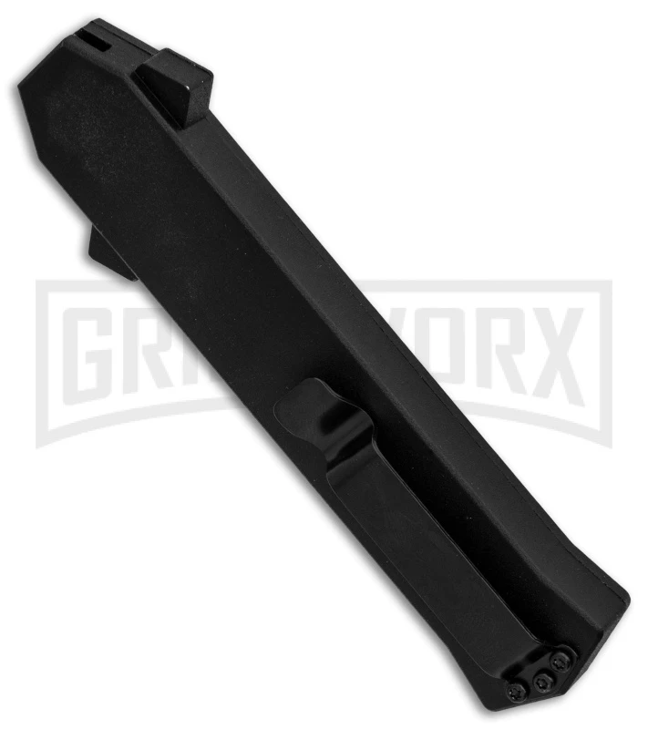 The AKC F-16 is a snappy, double-action OTF automatic knife inspired by the impressive F-16 jet of the same name. It has a side loaded thumb-slide that opens and closes the blade with smooth precision. The handle is made from aluminum with a stainless steel pocket clip for tip-down carry.