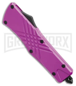 The Atomic Shield OTF offers a huge design built for comfortable everyday carry. It has a stainless steel drop point blade. The aluminum handle has a rubberized texture for improved grip with a pocket clip for carrying comfort. Using the side mounted slide will activate the double-action automatic feature for lightning fast blade deployment. A pommel glass breaker finishes off the tactical design. Add this massive, smooth-action OTF to your collection!