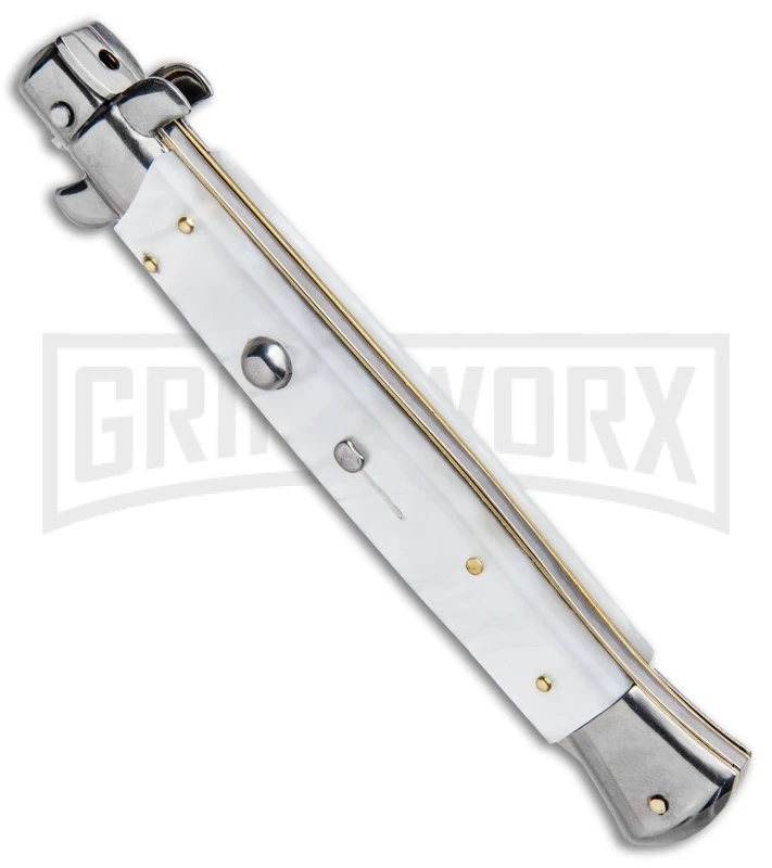 Frank B. 11″ Italian Stiletto White Acrylic Automatic Knife – Kris Polish