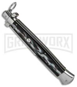 A.G.A. Campolin 18″ Italian Stiletto Sim Dark Horn Ring Pull Auto Knife – Bayo