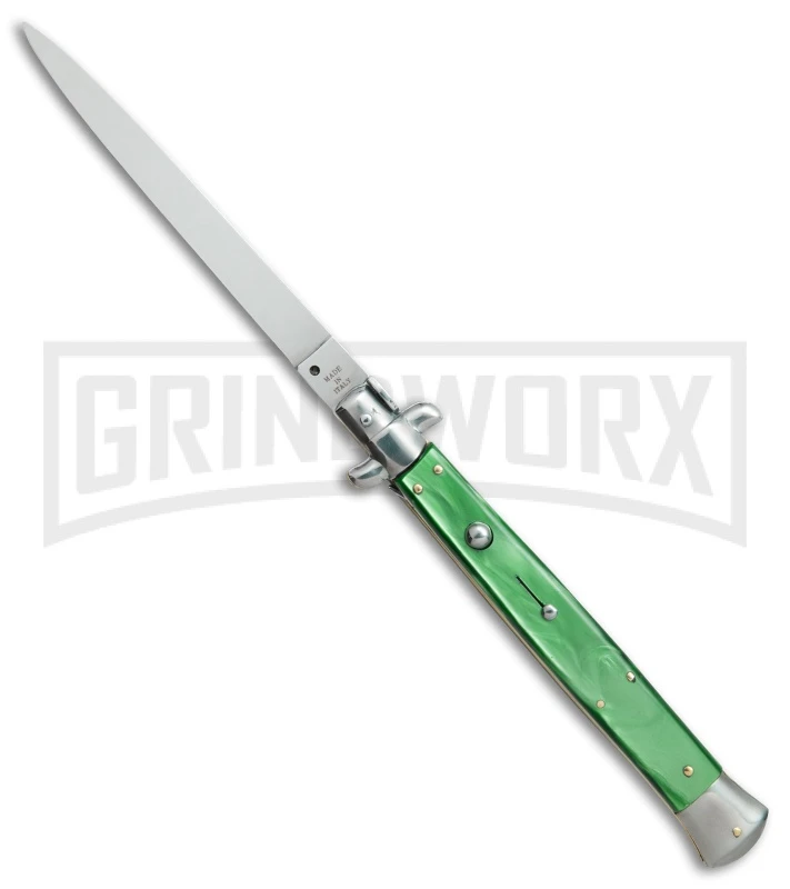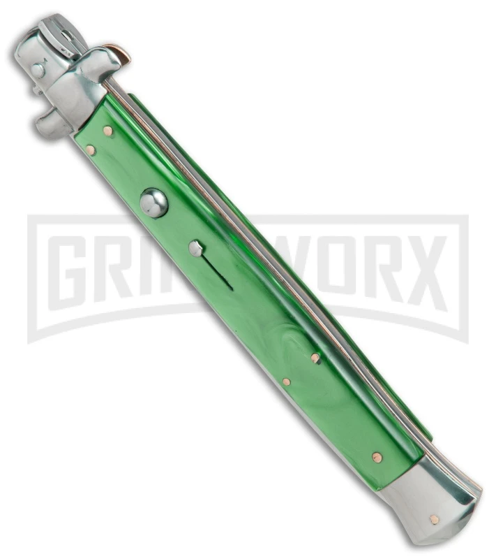 SKM 13″ Italian Stiletto Green Pearlex Automatic Knife – Flat Grind