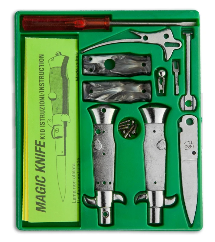 These little kits are a blast! You get to assemble a fully functional 4″ Italian stiletto knife. Once assembled, you can use it as a keychain (you must provide your own ring, however).