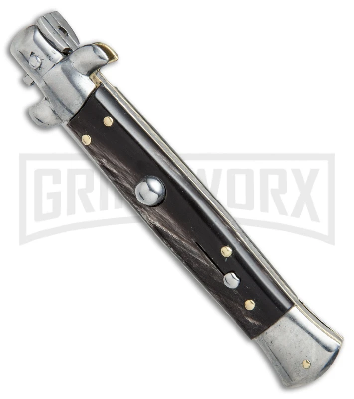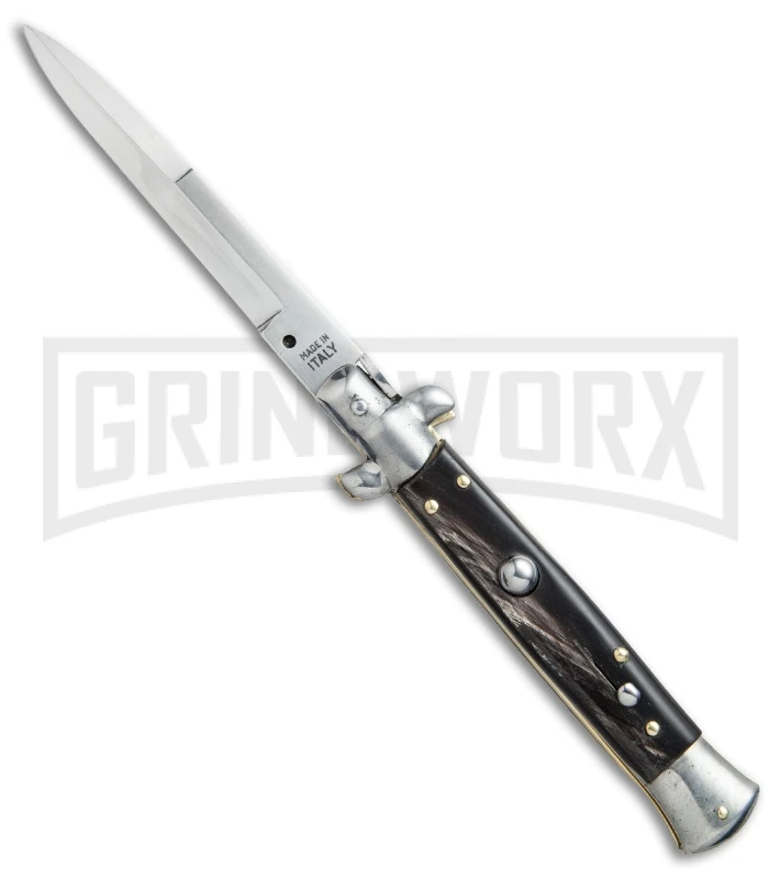 SKM 9″ Italian Stiletto Dark Horn Automatic Knife – Bayonet
